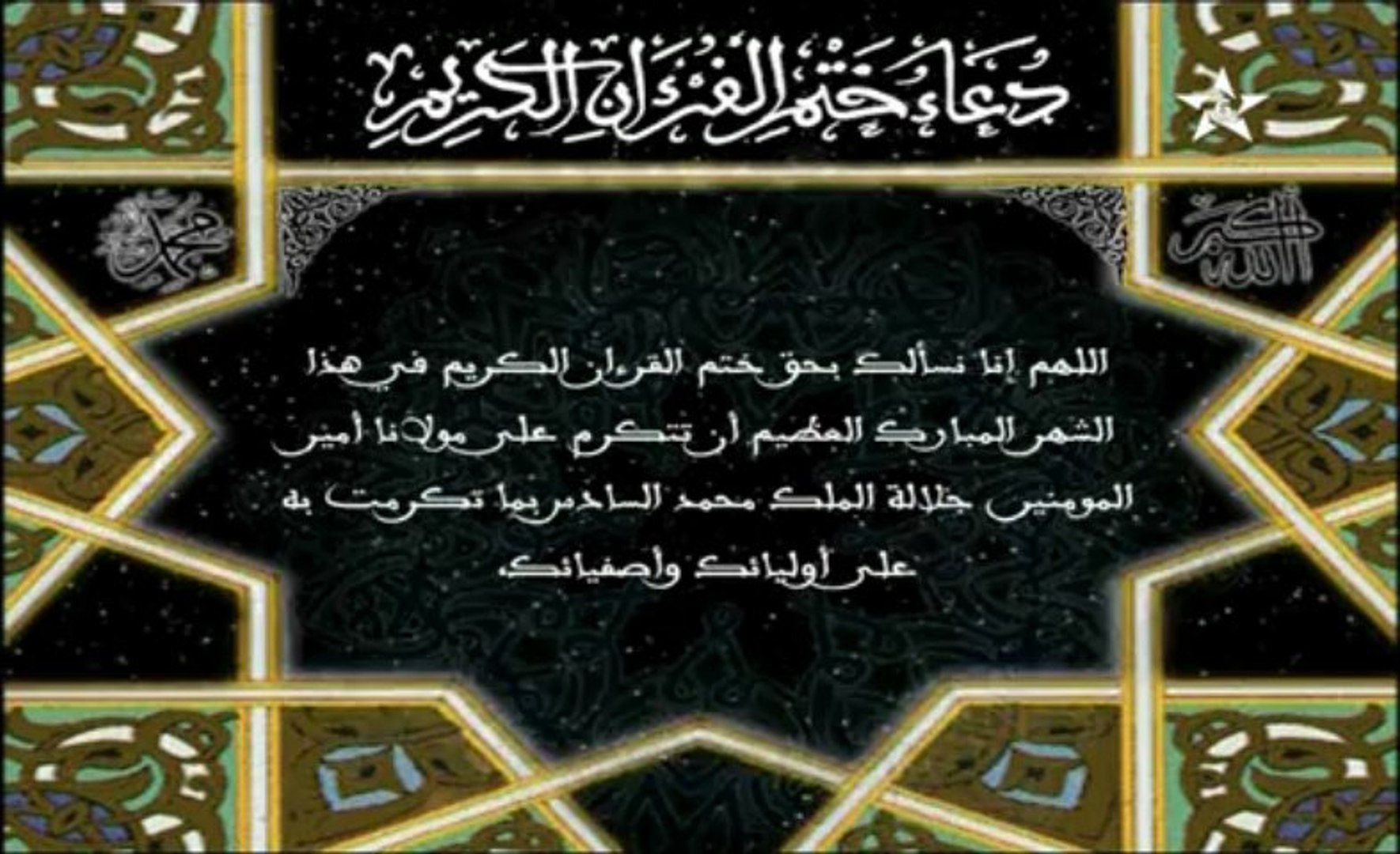 دعاء ختم القرآن الكريم _لا إله إلا هو المتوحّد في الجلال بكمال الجمال تعظيماً وتكبيراً، المتفرّد بتصريف الأحوال على التفصيل والإجمال تقديراً وتدبيراً، المتعالي بعظمته ومجده الذي نزلَّ. لا يوجد دعاء خاص لـ ختم القرآن الكريم في السنة النبوية حتى أن الصحابة لم يذكروا دعاء يجب أن يقرأه الشخص بعد أن ينتهي من قراءة المصحف كامل، ولكن من هو الذي وضع الدعاء الذي يوجد في نهاية المصاحف؟ لم يرد عن الرسول صلى الله عليه وسلم دعاء ثابت لختم القرآن الكريم، غير أنه صلى الله عليه وسلم كان يجمع أهل بيته بعد ختم القرآن الكريم ويدعو بالأدعية الجامعة، لما روى عن أنس رضى الله عنه. (اللَّهُمَّ ارْحَمْنِي بالقُرْءَانِ وَاجْعَلهُ لِي إِمَاماً وَنُوراً وَهُدًى وَرَحْمَةً). اللهم انقلنا بالقرآن العظيم من الذل إلى العز، ومن الضلال إلى الهدى، ومن الشر إلى الخير، ومن الشقاء إلى السعادة.