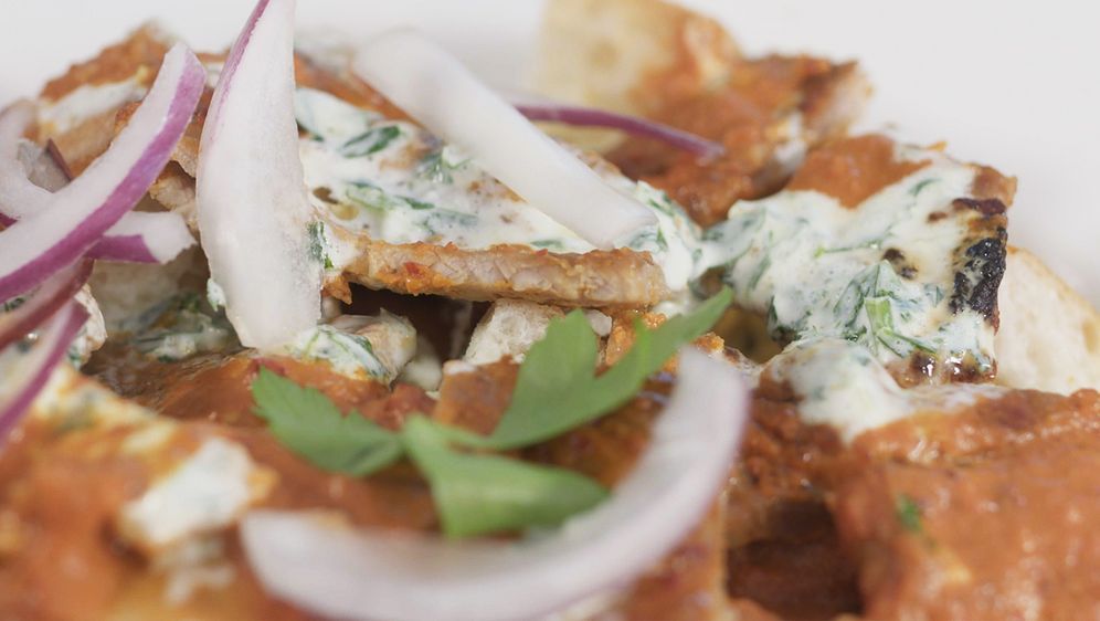 Would you like to make original i̇skender kebab in your own house in 20 minutes? It's name is originally from i̇skender efendi (alexander the great), who happens to be the originator of this type of kebab. You can make this delicious iskender kebap at home; Thin slices of lamb or beef in tomato based sauce, served over pide bread with yoghurt and grilled vegetables by the side. A specialty of the city of bursa, i̇skender kebap is named after a butcher called i̇skender bey, who first prepared this flavorful dish.